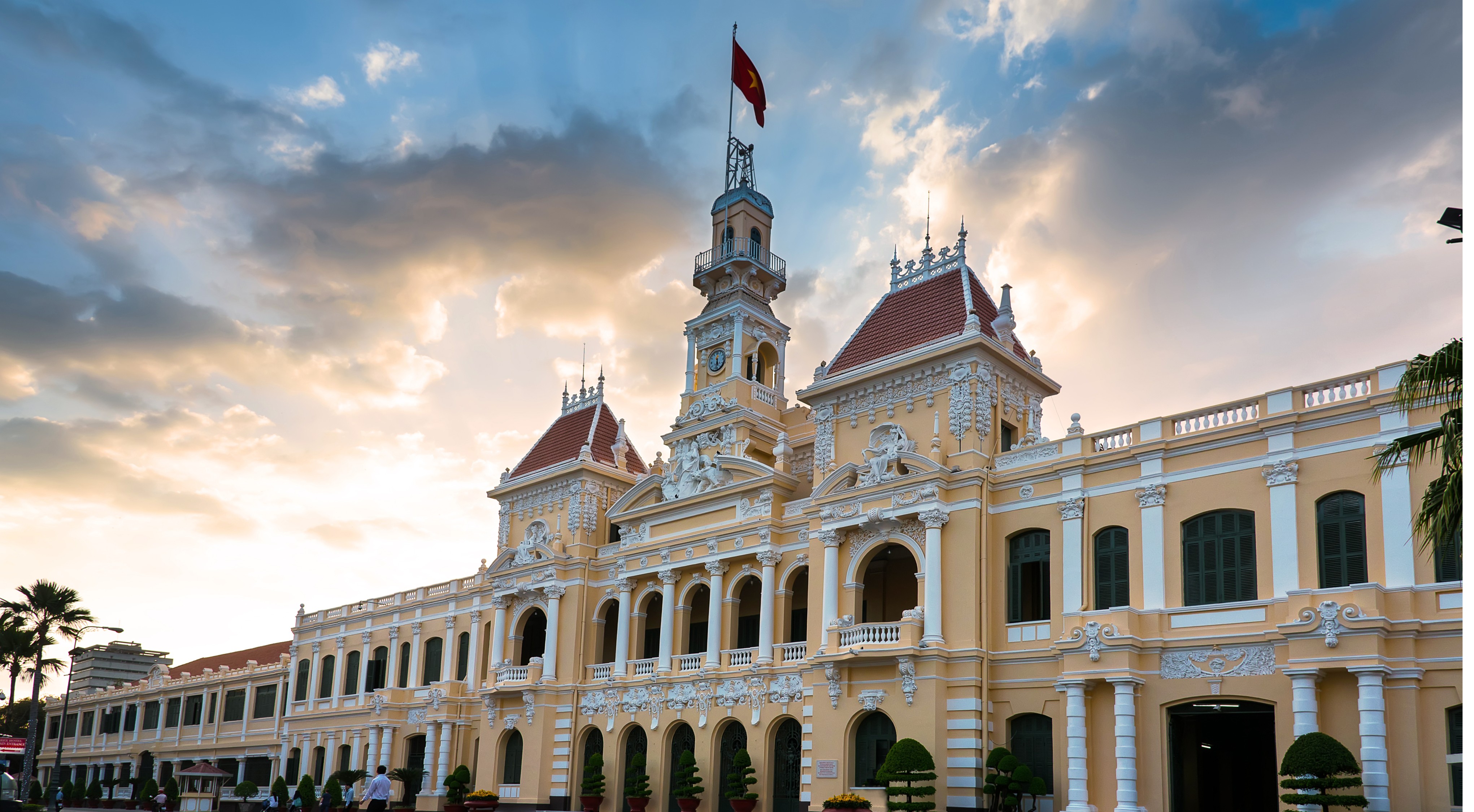 Départ pour un tour panoramique à travers les grandes artères du centre-ville afin de découvrir le passé colonial de l’ancienne capitale du sud : le palais de la Réunification (vue extérieure) ancien palais présidentiel et symbole de la chute de Saïgon le 30 avril 1975 ; la majestueuse cathédrale Notre-Dame de Saïgon et la célèbre poste centrale construite par Eiffel. -
