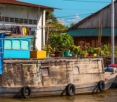 Naviguer sur le Mékong, c’est plonger au cœur de la péninsule indochinoise, au rythme des habitants de ce fleuve-roi qui a vu s’épanouir des civilisations au passé glorieux, dans les langueurs tièdes du lac Tonlé Sap et des rives sacrées d’Angkor jusqu’au vaste delta qui s’alanguit en un incroyable labyrinthe de canaux. Dans le confort intimiste du bateau Le Mékong Romance 5*, entièrement rénové, vous découvrirez nos nouvelles escales dans le delta du Mékong, au plus près de la vie locale. L'itinéraire reliera les villes royales ou historiques d’Angkor, Phnom Penh et Saïgon. Vous traverserez des villages, des paysages agraires ou bucoliques, des mondes façonnés par le bouddhisme et les esprits du fleuve jusqu’au trépidant marché de Cholon dans le quartier chinois de la bouillonnante Saïgon.